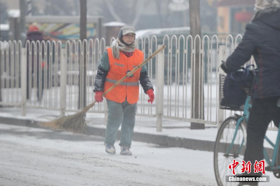 2月7日凌晨1点左右,降雪率先从房山开始,自南向北扩展,4点前后影响城区,目前大部分地区降雪已经如期而至,预计今天白天有小到中雪,夜间阴有零星小雪转多云。由于路面温度较低,会导致道路结冰现象,上班出行最好乘公共交通,注意交通安全。中新网记者 金硕 摄