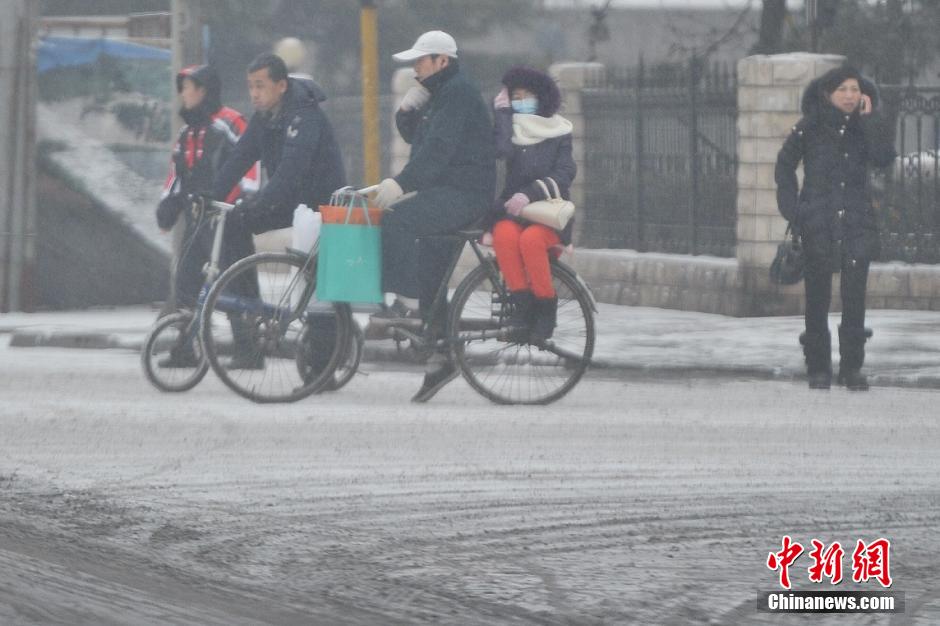 2月7日凌晨1点左右,降雪率先从房山开始,自南向北扩展,4点前后影响城区,目前大部分地区降雪已经如期而至,预计今天白天有小到中雪,夜间阴有零星小雪转多云。由于路面温度较低,会导致道路结冰现象,上班出行最好乘公共交通,注意交通安全。中新网记者 金硕 摄