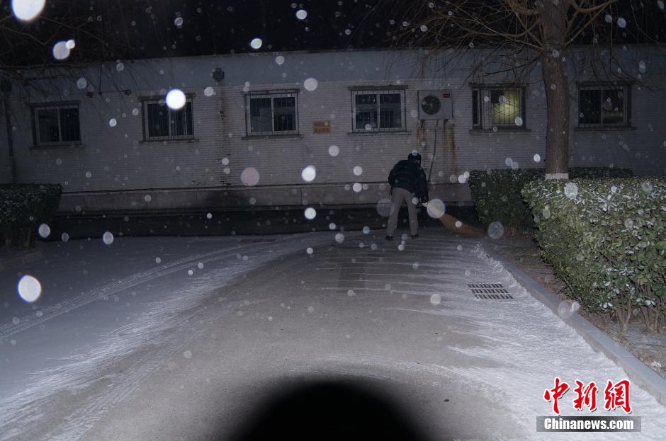 2月7日凌晨1点左右,降雪率先从房山开始,自南向北扩展,4点前后影响城区,目前大部分地区降雪已经如期而至,预计今天白天有小到中雪,夜间阴有零星小雪转多云。由于路面温度较低,会导致道路结冰现象,上班出行最好乘公共交通,注意交通安全。图为北京阜成门降雪。中新网记者 周维 摄