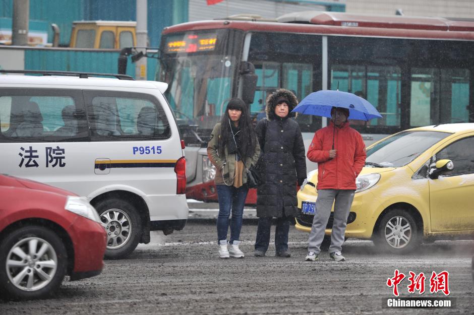 2月7日,北京连续107天没有有效降水后,在节后上班的第一天迎来了首场降雪。据了解,在7日凌晨1点左右,降雪率先从房山开始,自南向北扩展,4点前后影响城区,目前大部分地区降雪已经如期而至。图为雪中的上班族。中新网记者 金硕 摄