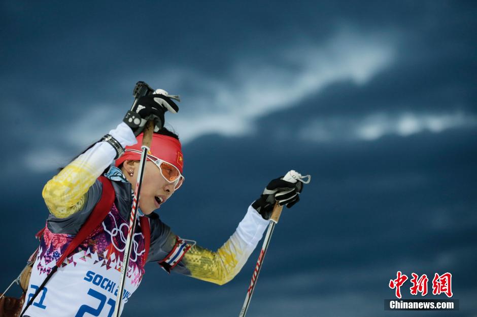 当地时间2月9日,索契冬奥会冬季两项女子7.5公里短距离竞速赛中,中国姑娘宋朝卿奋力滑行。卫冕冠军斯洛伐克的KUZMINA Anastasiya以21分06秒8获得金牌。中国四位选手出战,成绩最佳的张岩排名第49位。中新社发 刘关关 摄