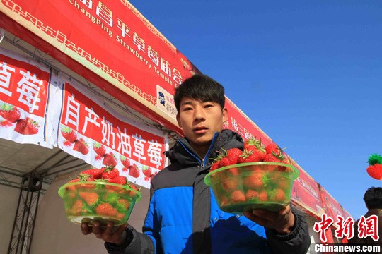 2月8日,第三届北京昌平草莓庙在昌平区兴寿镇开幕。中新社发 潘旭临 摄