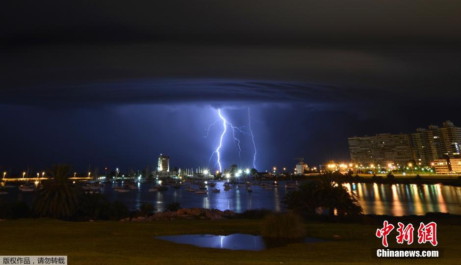 乌拉圭遭雷暴袭击 闪电划破夜空