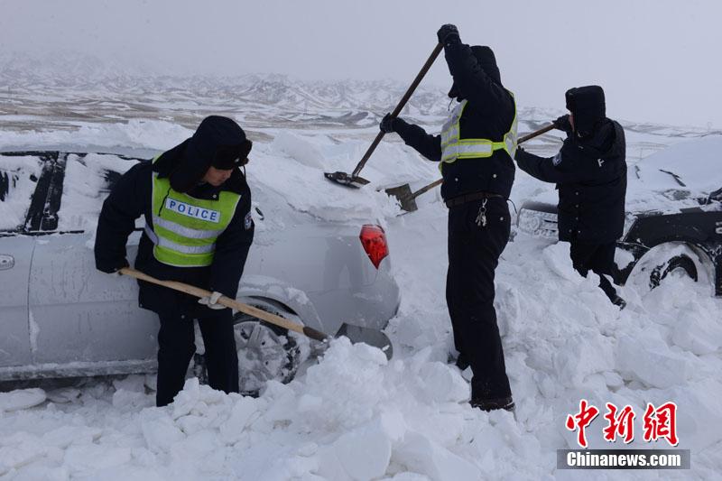 自2月6日起,新疆额敏县辖区省道S201线,玛依塔斯路段狂风再起,大量车旅行人被风雪围困。险情发生后,县委、政府组织公安机关、驻地部队官兵、道路管理部门联合施救。截止10日,先后解救围困车辆200余辆,过往行人1000余人。丁飞 摄