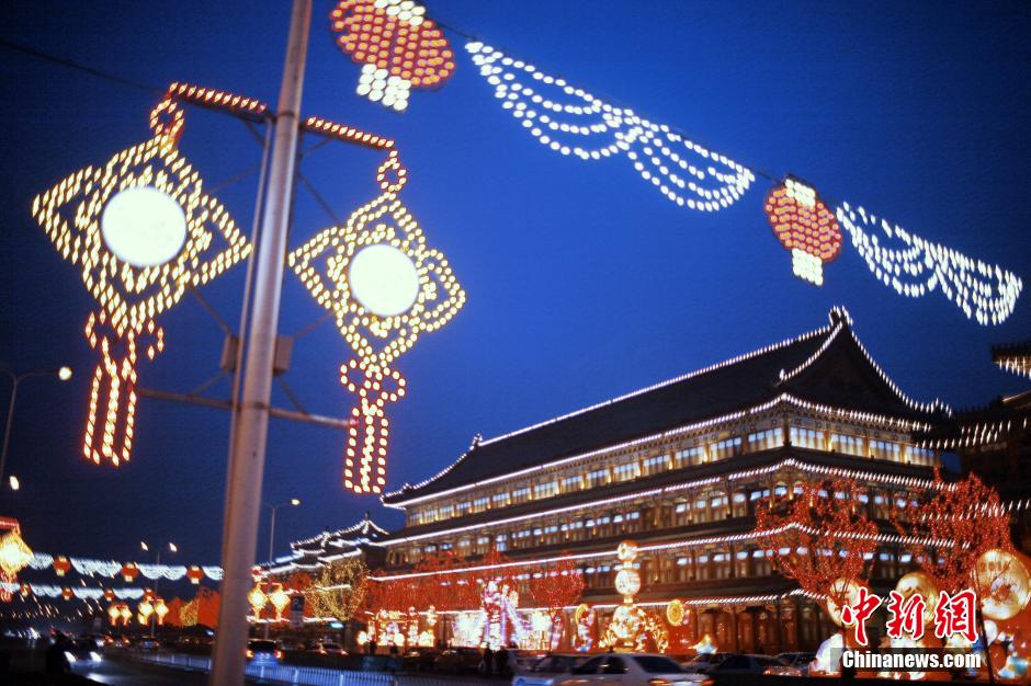 2月12日晚,天津市西青区杨柳青镇举办大型元宵灯会,千余盏彩灯将千年古镇杨柳青装点起来,吸引了众多游客及市民前来观赏。中新社发 佟郁 摄