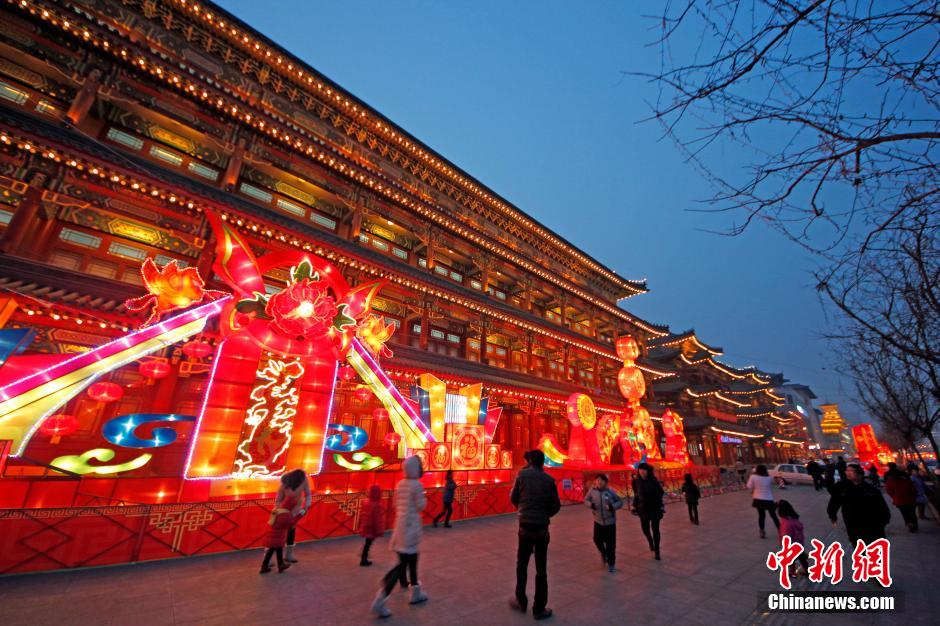 2月12日晚,天津市西青区杨柳青镇举办大型元宵灯会,千余盏彩灯将千年古镇杨柳青装点起来,吸引了众多游客及市民前来观赏。中新社发 佟郁 摄