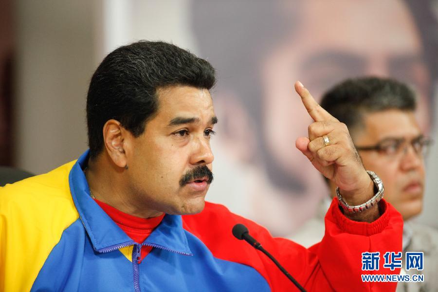 委内瑞拉总统府提供的这张照片显示,委内瑞拉总统马杜罗2月16日在首都加拉加斯发表电视讲话。委内瑞拉总统马杜罗16日发表电视讲话,宣布驱逐3名美国领事官员,原因是他们参与了企图颠覆委政府的行动。马杜罗同时表示不允许任何国家干涉其主权。新华社发