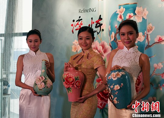 2月24日,台湾法蓝瓷首度以陶瓷诠释古典文学《红楼梦》,在北京发布“红楼梦”系列限量新品,开启文创跨界的新视野。中新社发 郑巧 摄