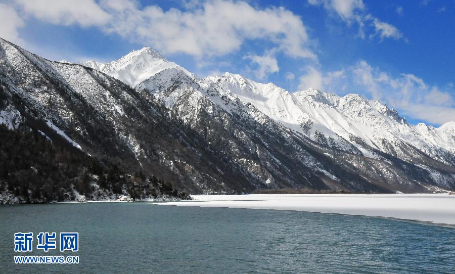 由于近日的雨雪天气,然乌湖部分湖面被冰雪覆盖(3月2日摄)。然乌湖是西藏昌都八宿县境内的一片堰塞湖,紧邻川藏公路,面积22平方千米。 新华社记者 王守宝 摄