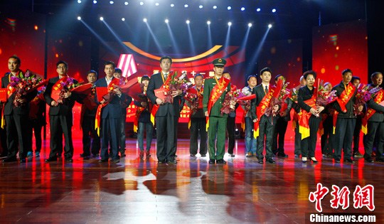 3月25日,在河南省人民会堂,河南省第十一届见义勇为英雄人物颁奖仪式在郑州举行,对近年来涌现出的见义勇为先进典型进行表彰。中新社发 王中举 摄