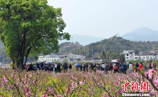 图为前往观赏桃花的路上,游人如织。吕巧琴 摄