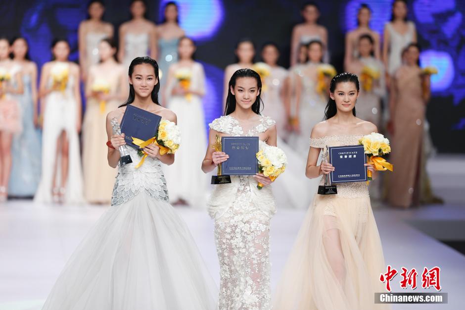 3月30日晚,第九届中国超级模特大赛总决赛在北京中国国际时装周(2014/2015秋冬系列)上举行,30位入围总决赛的选手在T台上为观众带来一场同步国际秀场的盛装展示。最终,13号选手耿璇获得冠军。中新社发 盛佳鹏 摄