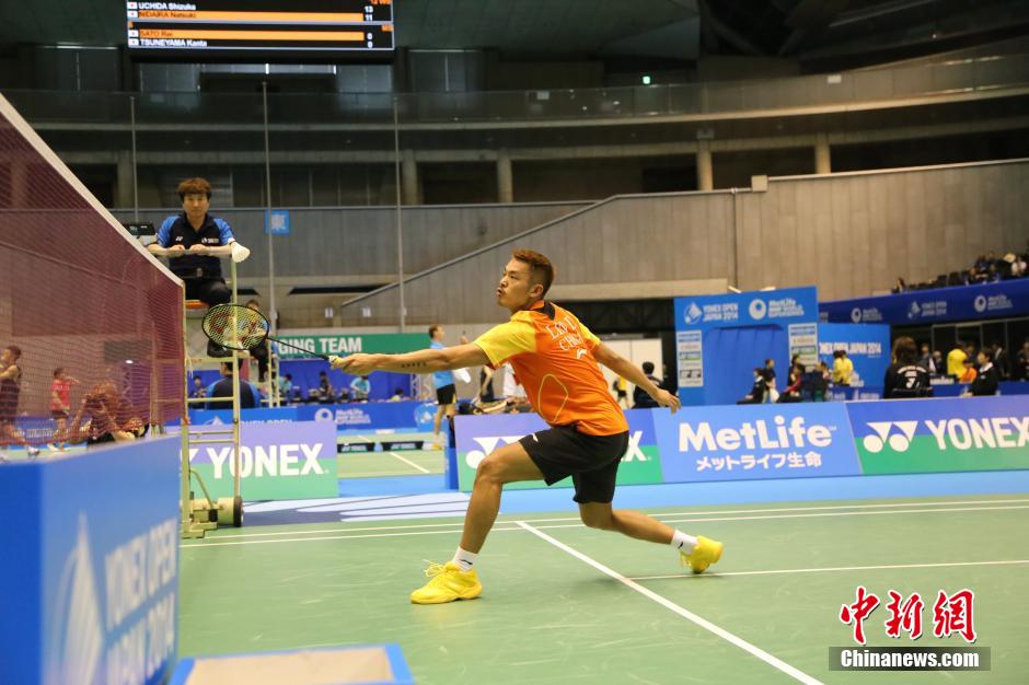 2014日本羽毛球公开赛6月10日在东京体育场开赛,久疏战阵的林丹在资格赛中亮相,以12-21、21-19、21-7,总比分2:1战胜日本选手坂井一将。林丹赛后称,因世界排名原因很多比赛打不了,此次参赛很开心,希望能表现得很好。中新社发 高越 摄