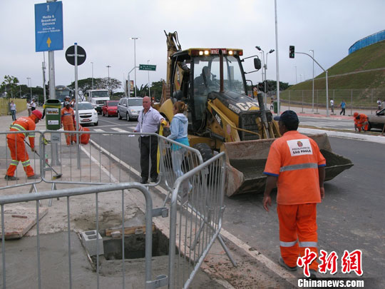 2014巴西世界杯将于6月12日在圣保罗体育场拉开战幕,然而在球场周边的道路至今仍未完工。