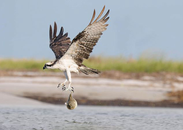 据英国《每日邮报》6月23日报道,来自印度芒格洛尔的33岁摄影师纳拉辛汉(Ramasubramanian Narasimhan)在弗罗里达州的狄索多堡海滩公园拍下这样一幕:一只鱼鹰在水上捕捉到了一条带有剧毒的河豚鱼,而在这条鱼鼓掌得形同气球一般时,鱼鹰却把它放回到了水里。