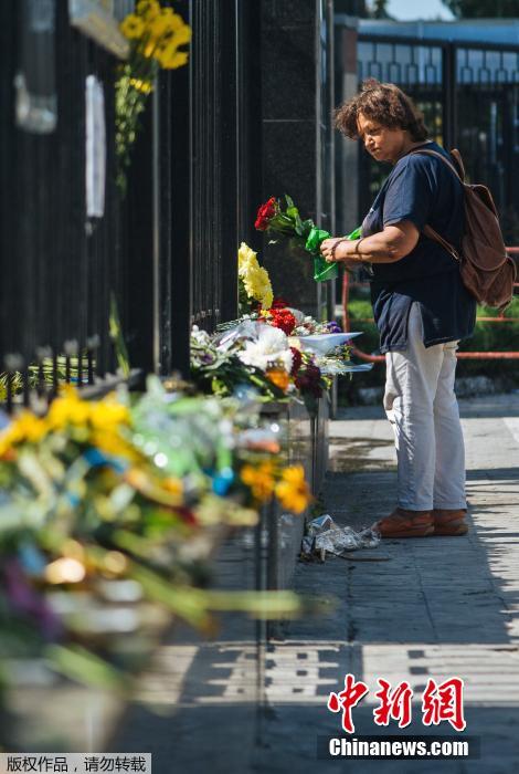 当地时间7月16日,俄罗斯莫斯科,民众在地铁站入口摆放鲜花悼念脱轨事故遇难者。俄罗斯首都莫斯科15日早高峰时段发生一起地铁列车脱轨事故,导致包括1名中国人在内的至少21人死亡、二百余人受伤。这是莫斯科地铁系统开通近80年来最严重的事故之一。