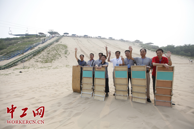 劳模们在滑沙活动结束后合影留念。中工网记者韩靖摄