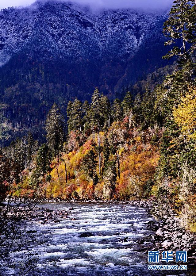 这是林芝境内雅鲁藏布江风光(10月20日摄)。林芝地处西藏东南部,雅鲁藏布江下游,平均海拔3100米,是西藏平均海拔最低的地区。这里既有莽莽原始林海,又是高山花卉的乐土,自然风貌保存完好,素有“西藏江南”、“高原氧吧”等美誉。新华社记者 张国俊 摄
