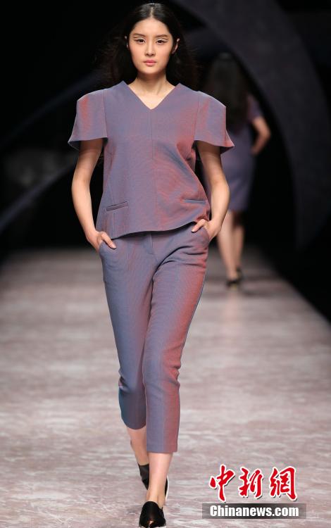 10月26日晚,正在北京举行的中国国际时装周2015春夏系列发布活动,举行旭化成?中国时装设计师创意大奖--刘梦曦作品发布会,香港独立设计师刘梦曦本次作品发布会主题为“世界.舞台”,图为模特展示香港设计师刘梦曦创意大奖作品。 中新社发 钱兴强 摄