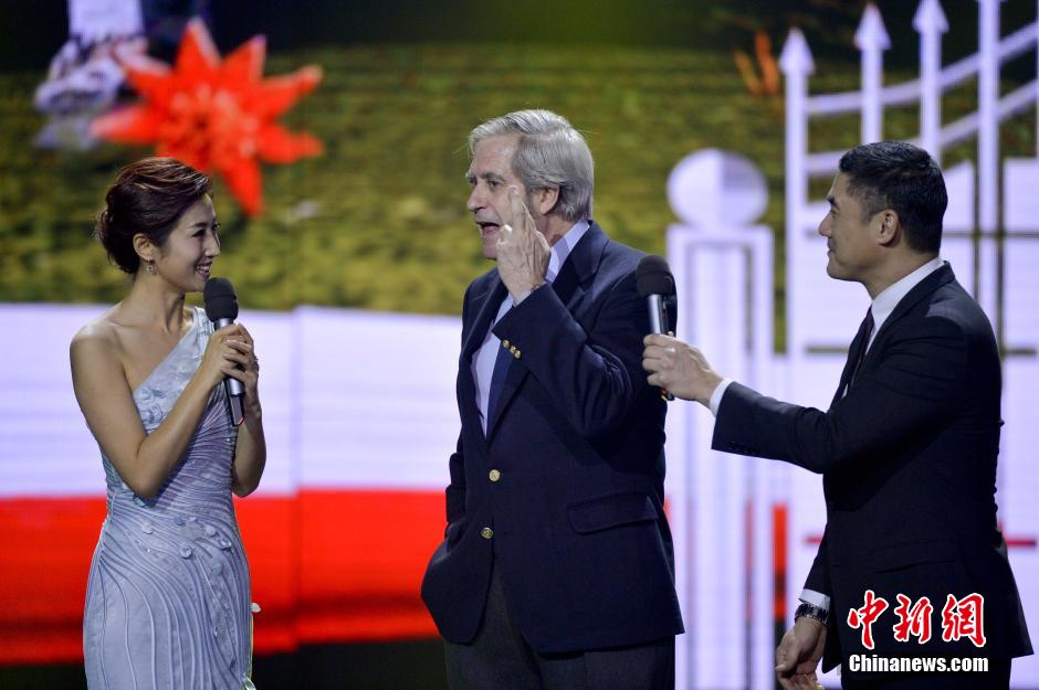 图为西班牙驻华大使瓦伦西亚先生在晚会现场用中文为中国观众送上新年祝福。中新社发 陆欣 摄