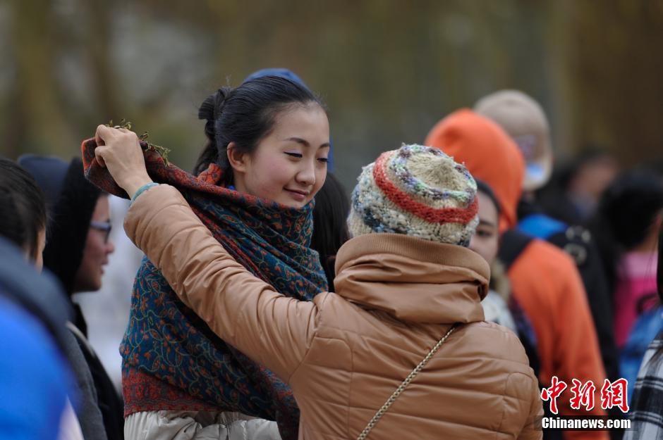 2月5日,立春过后的昆明迎来降温,报考云南艺术学院的艺考考生在寒风中候考。中新社发 刘冉阳 摄