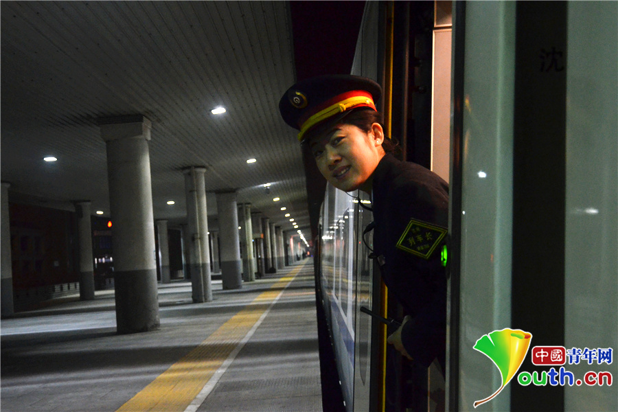 列车即将开动,列车长戴静在做最后的确认工作。中国青年网见习记者 苏贺摄
