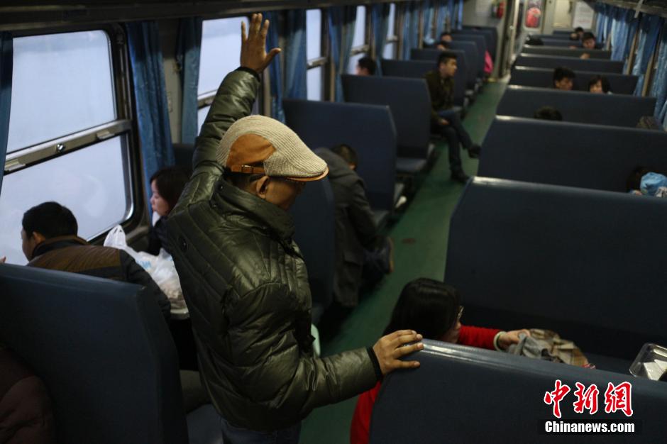 2月14日,临近农历春节,从成都驶往深圳的春运“绿皮车”车厢空荡如也,一些乘客便在3人硬座上躺下熟睡,以此渡过漫长旅途。每年此时,从欠发达地区到中国沿海发达地区的列车往往会出现这种“逆向”春运情况,春运高峰人群主要集中在沿海城市到内陆地区的外出务工人员。张浪 摄