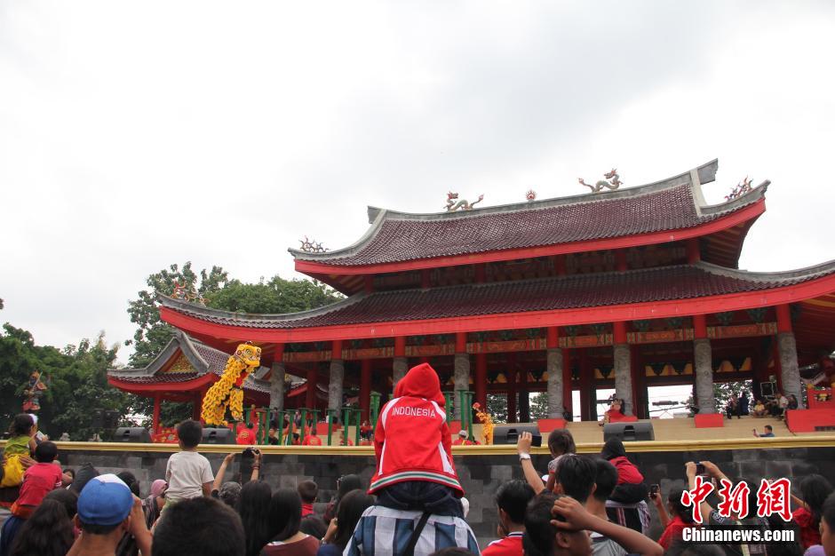 2月19日,记者来到位于印尼爪哇岛中部的三宝垄市采访当地华人过春节。记者看到,成千上百的当地名民众和华人聚居广场,欣赏舞台上的高柱狮子舞和歌曲表演。有的在郑和铜像前留影,有的在郑和庙里烧香顶拜。随行的华人、当地华文报《中爪哇快报》社社长张克顺说,因昨晚下雨,今天来此参加春节游园的人有逾5000人,这里晚上将更热闹。顾时宏 摄