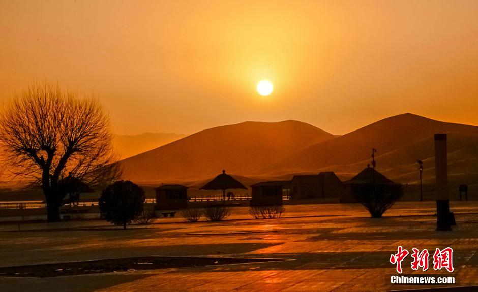 敦煌鸣沙山月牙泉羊年首日晨景醉游人