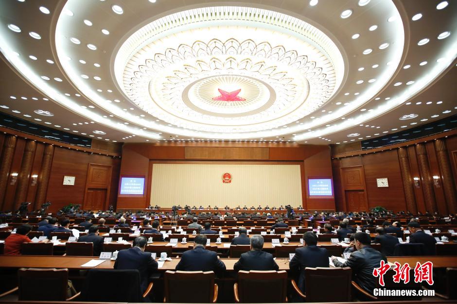 2月27日下午,十二届全国人大常委会第十三次会议在北京人民大会堂闭幕。中新社发 盛佳鹏 摄