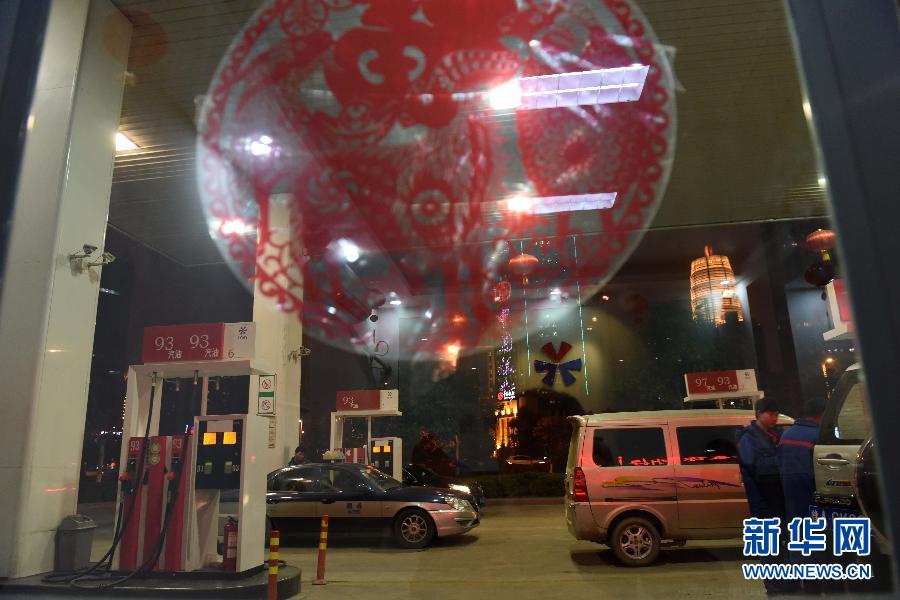 2月27日,车辆在河南郑州一家加油站加油。当日,国家发展改革委发出通知,决定将汽、柴油价格每吨分别提高390元和375元,测算到零售价格90号汽油和0号柴油(全国平均)每升分别提高0.29元和0.32元,调价时间为2月27日24时。新华社记者 朱祥 摄