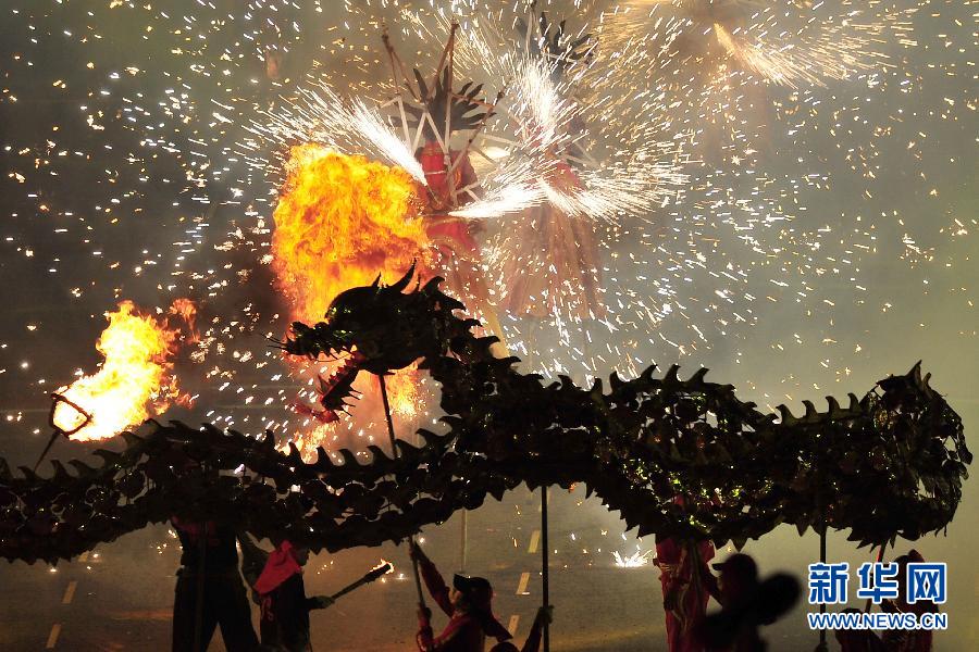 2月27日,演员在新加坡F1赛道上表演。当日,新加坡在F1赛道举行妆艺大游行庆祝春节。 新华社发(邓智炜摄)