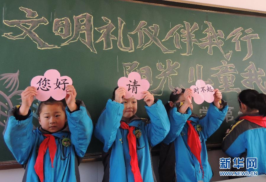 3月2日,“文明礼仪教育”成为江苏连云港市海州区解放路小学二年级学生的开学第一课。 新华社发(耿玉和 摄)