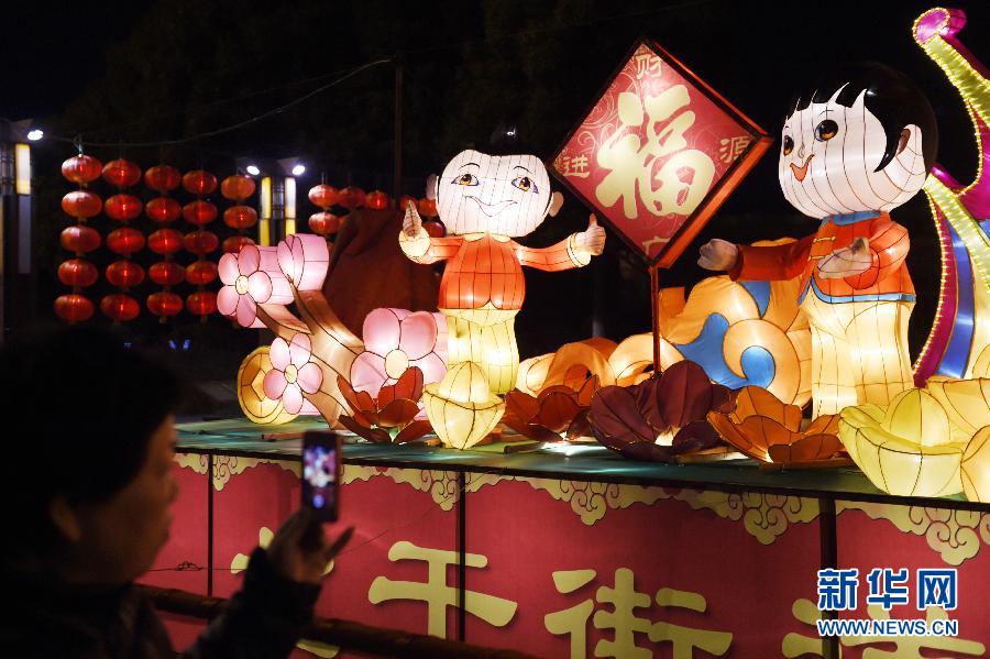3月3日,一位市民在萧山区人民广场赏灯。当日是传统的正月十三“上灯日”,为迎接即将到来的元宵佳节,各式各样的羊年花灯、彩灯在杭州市萧山区人民广场被正式点亮,吸引了许多市民前来休闲赏灯。新华社记者 鞠焕宗 摄