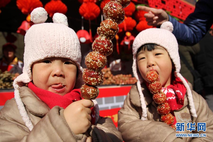 3月4日,两名小朋友在青岛海云庵糖球会上品尝糖球。当日,青岛“萝卜·元宵·糖球会”之最火爆的海云庵糖球会开幕,吸引大批市民和游客前来品美食、赏民俗。海云庵糖球会每年元宵节期间举办,是集商贸、文体、旅游、美食等于一体的民俗盛会。新华社发(黄杰显 摄)