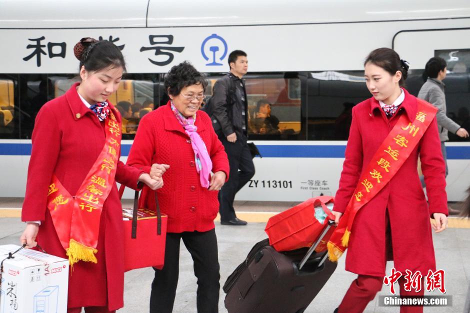 3月4日,福建铁路春运迎来节后返程客流高峰。3月5日是“学雷锋纪念日”,南昌铁路局福州客运段休班的动车乘务员姑娘们不顾春运带来的劳累,以实践雷锋精神为主题,来到福州火车站为返城旅客提供志愿服务,成为春运中一道靓丽风景线。龙敏 摄