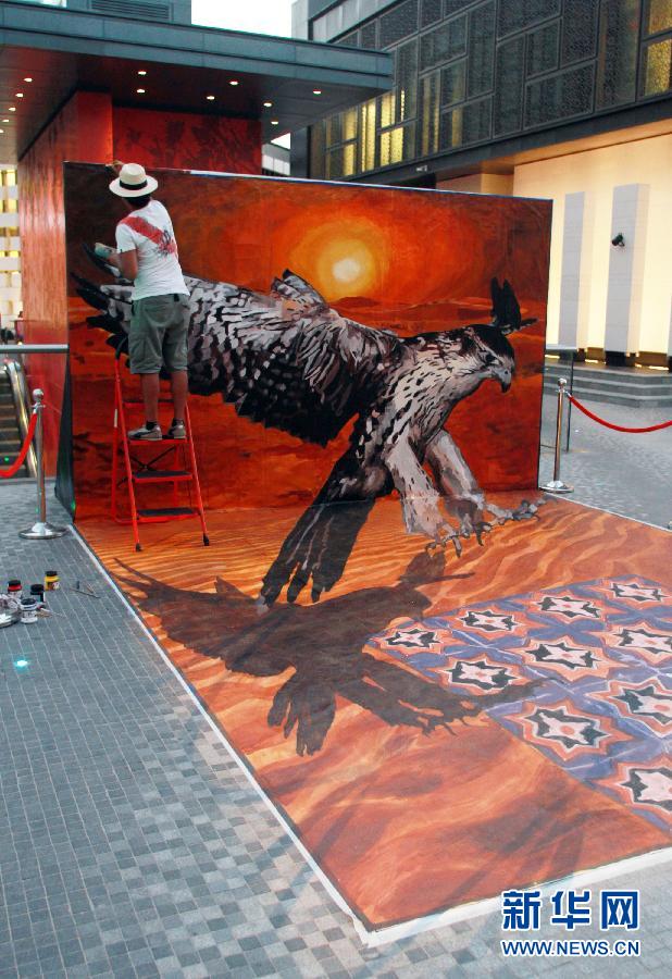 3月4日,在阿拉伯联合酋长国迪拜,一位画家在修饰自己的3D涂鸦作品。一场妙趣横生的街头3D涂鸦艺术展日前在迪拜游客云集的卓美亚海滩居住区开幕,10多位国际知名的街头艺术家利用步行街的墙面与地面现场作画,向公众展示3D涂鸦这一艺术形式,吸引了大批观众与游客前来欣赏和摄影留念。新华社记者李震摄