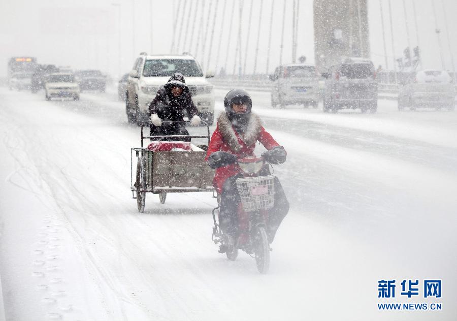 3月8日,吉林省吉林市市民冒雪出行。当日,吉林省中南部地区出现强降雪,吉林、辽源、通化、白山、延边等地区还将出现大到暴雪天气。此次降雪给当地高速公路、机场通行等带来影响,市民出行需注意安全。新华社发(朱万昌 摄)
