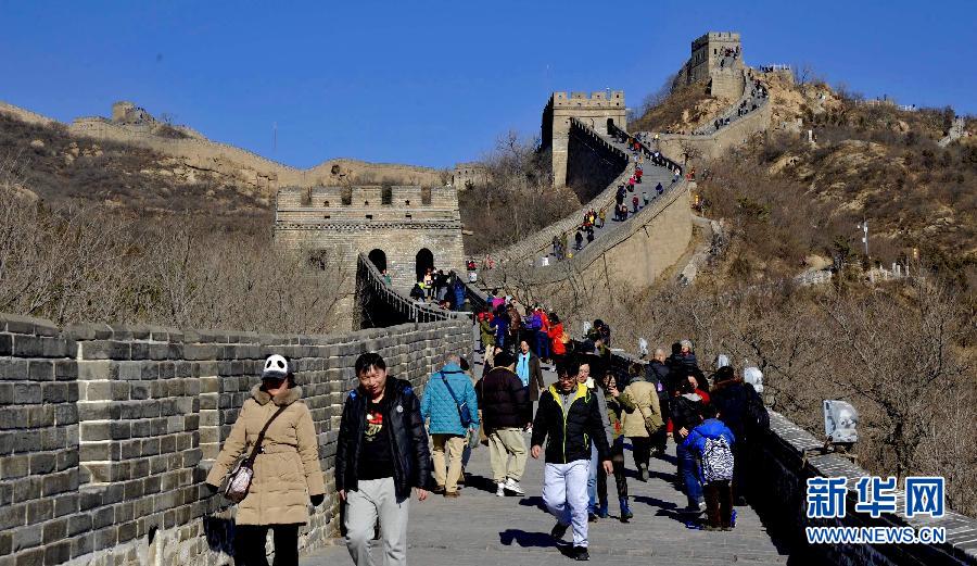 当日,一些北京市民和游客来到位于北京市北部的延庆县攀登八达岭长城,享受阳光和新鲜空气。延庆县八达岭特区办事处介绍,近期每天有万余名游人来八达岭长城踏青旅游。新华社记者 李欣 摄