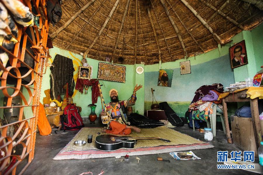 3月6日,52岁的“宝乌尔”泰伦·基亚帕在印度西孟加拉邦小城圣迪尼克坦的家中吟唱。