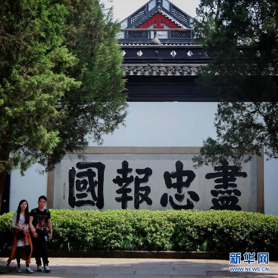 两位游客走进西湖岸边的岳王庙(2015年3月29日摄)。新华社记者 王颂 摄