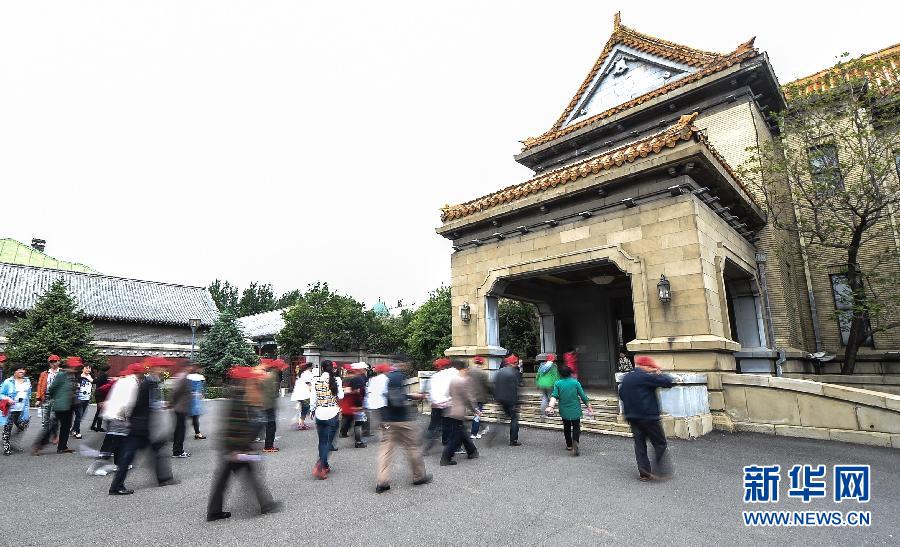 5月21日,游客在长春伪满皇宫博物院参观游览。今年是抗日战争胜利七十周年,在吉林长春,结合爱国主义教育和近现代史教育的“历史文化游”受到越来越多的关注。据介绍,进入五月以来,长春伪满皇宫博物院迎来了大批游人,本月前20天已接待游客85562人次。新华社记者 王昊飞 摄