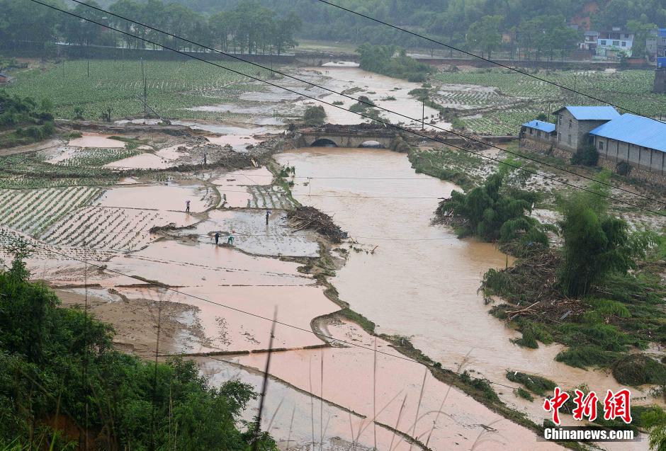 5月21日,福建宁化许多乡镇农田种植的经济作物洪水冲毁。当日,福建省防汛办发布的数据显示,此次暴雨过程已造成福建7人遇难、1人失踪。5月18日到19日,福建西北部地区持续暴雨到大暴雨,三明市宁化、清流县城区三分之一被淹,龙岩市长汀县多个乡镇发生洪涝灾害。20日,随着主雨区南移,福建西部、南部地区发生暴雨。福建省防汛办披露,截至20日19时统计,福建有三明、龙岩、泉州、南平4个设区市、20个县(市、区)、185个乡镇24.2万人受灾,紧急转移4.1万人,农作物受灾21.3千公顷,倒塌房屋0.249万间,直接经济总损失20.87亿元人民币。中新社发 张斌 摄