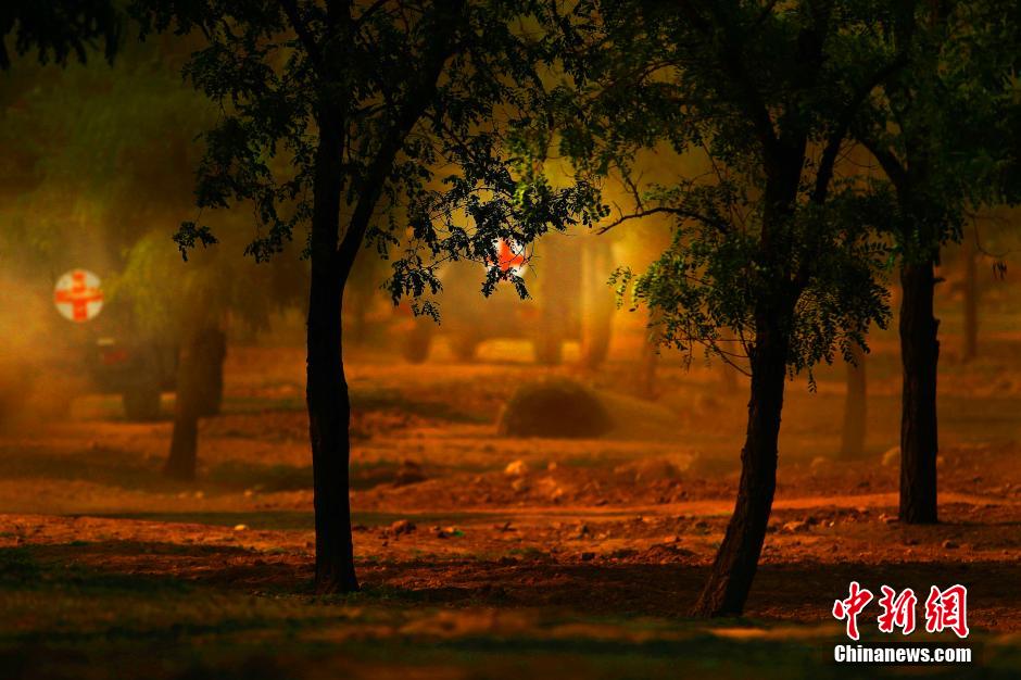 5月26日,中国人民解放军后勤学院与北京军区驻冀某防空旅联合举行的“保障胜利——2015”演习在河北展开,此次以后勤战备建设规范试点和“联教联训”为主题的演练,以疏散隐蔽、后方指挥所和野战库所开设、作战后勤保障筹划及保障行动处置与实施为主要内容。中新社发 宋吉河 摄