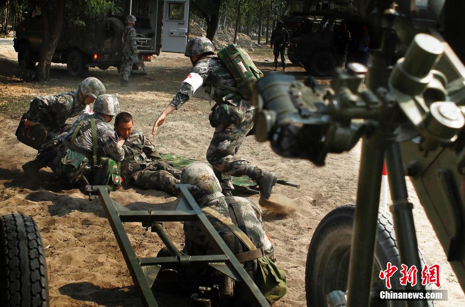 5月26日,中国人民解放军后勤学院与北京军区驻冀某防空旅联合举行的“保障胜利——2015”演习在河北展开,此次以后勤战备建设规范试点和“联教联训”为主题的演练,以疏散隐蔽、后方指挥所和野战库所开设、作战后勤保障筹划及保障行动处置与实施为主要内容。中新社发 宋吉河 摄