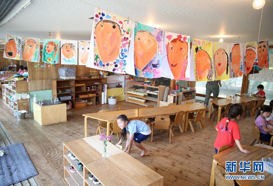 5月27日,在日本东京都立川市富士幼儿园,小朋友在教室里上课。新华社记者刘天摄