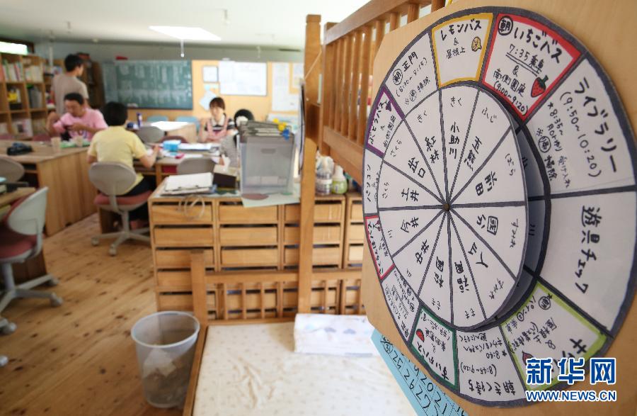 这是5月27日在日本东京都立川市富士幼儿园拍摄的教师办公室内的排班表。新华社记者刘天摄