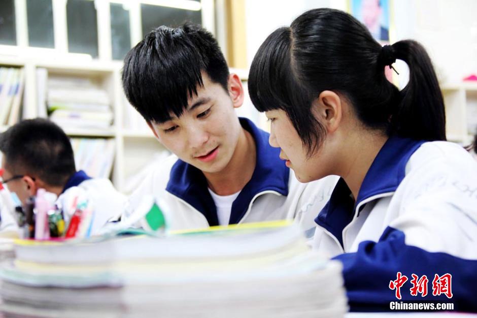 5月27日,甘肃省张掖市中学高考班内,莘莘学子正在全力做最后的“冲刺”。距离2015全国高考,还有不到半个月的时间,为迎“战”,高考生们在课堂上认真听讲;向老师讨教、在课间互相探讨学习、在课后更是“挑灯夜读”……拿出“十八般武艺”备战高考,镜头下的他们显得平和又紧张。赵琳 摄