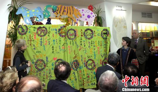 27日,俄罗斯汉学家扎哈罗夫新作《十二生肖》在俄出版。当天扎哈罗夫举行新书发布会,中国驻俄大使夫人史晓玲女士、前驻俄大使张德广出席发布会。图为俄罗斯儿童表演十二生肖的故事。