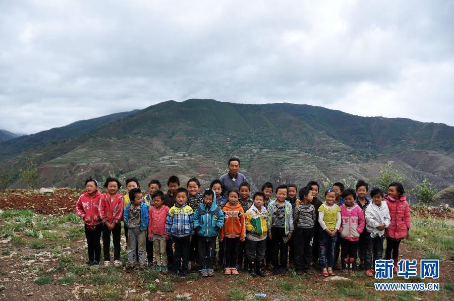 这是谢毕华(中)与25名学生在学校操场上的合影(5月28日摄)。 谢毕华是贵州省威宁彝族回族苗族自治县斗古乡关口小学洼营教学点的一名教师。洼营教学点地处乌蒙大山深处,在2009年该教学点建立之初,本来在条件稍好的关口小学任教的谢毕华主动申请调到这里任教。谢老师的到来,使上关村洼营、银河两个组原本要走两个多小时山路去上学的学生,实现了“家门口”上学的梦想。六年来,谢毕华孤身一人守着20余名学生。在洼营教学点,他是“校长”、“教务主任”、任课老师,还是学校负责学生食品安全和后勤保障的负责人。教学点里的所有大小事务,都由谢老师“一肩挑”。现在让谢毕华最担心的是,他退休后是否还有人前来接过他的教鞭,把洼营教学点的教学“薪火”传递下去。新华社发(杨文斌 摄)图片来源:新华网